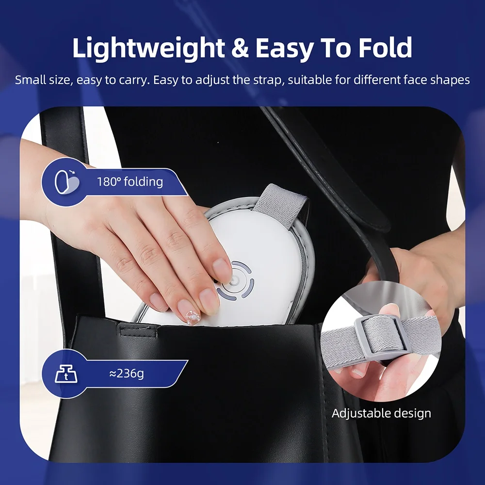 6. Lightweight & Easy to fold.180° folding, weight 236g, small size, easy to carry. Easy to adjust the strap, suitable for different face shapes.